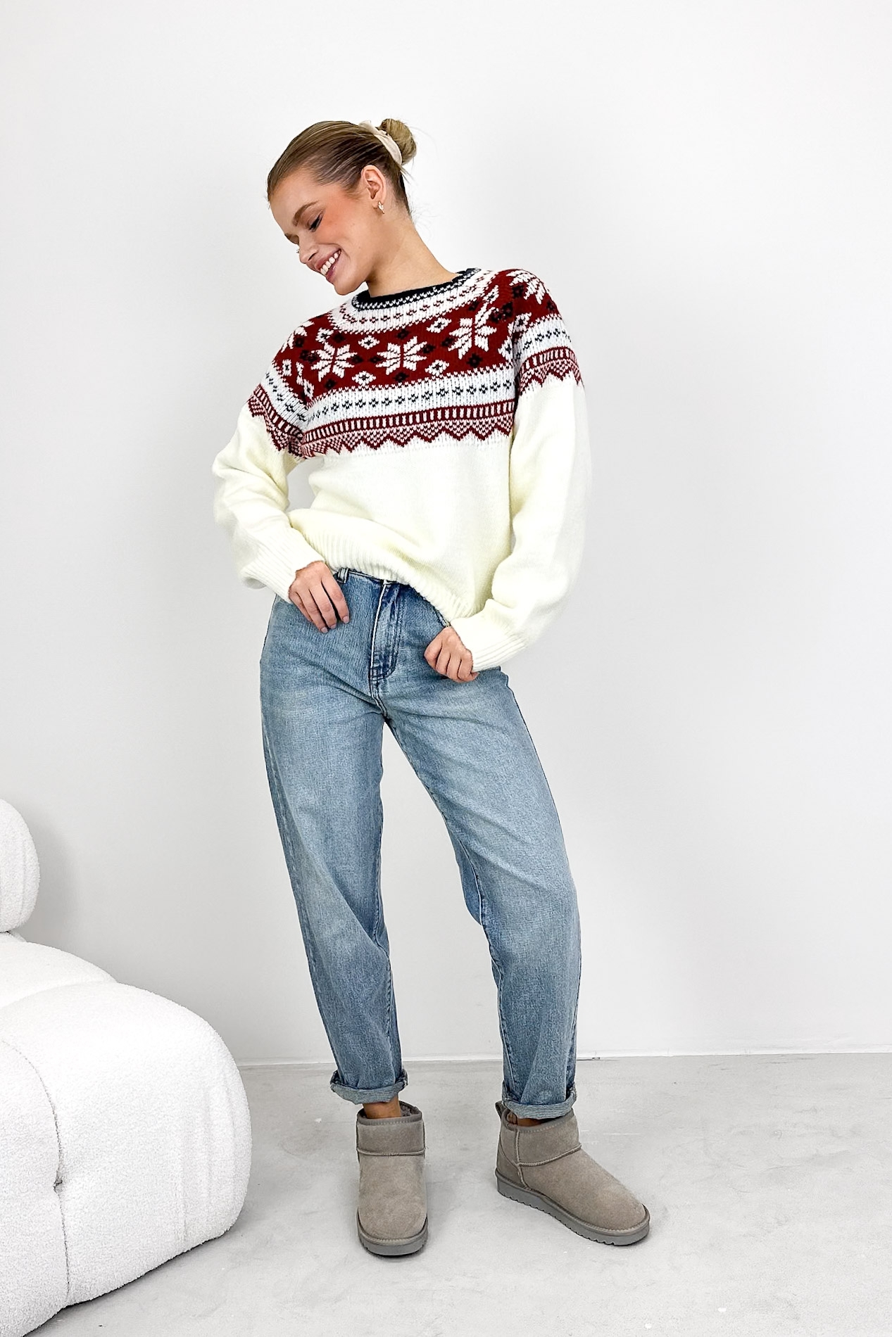 Ciepły sweter: Nic nie podkreśla zimowego klimatu lepiej niż miękki, ciepły sweter. Wybierz model o ciekawym wzorze lub fakturze, który doda stylu i przytulności każdej stylizacji.