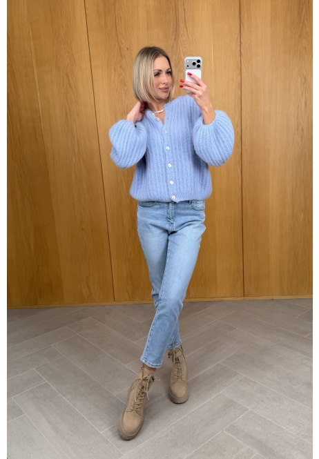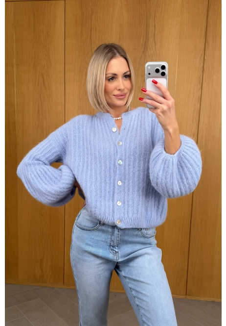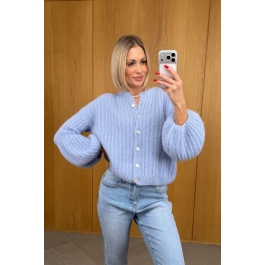 Zapinany na subtelne guziczki, świetnie sprawdzi się zarówno do jeansów, jak i ulubionej spódniczki. To ten typ sweterka, którego nie chcesz zdejmować — lekki, miękki i mega komfortowy.