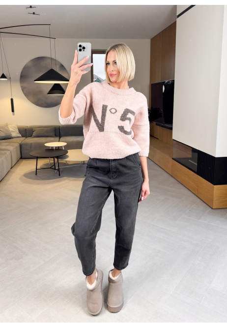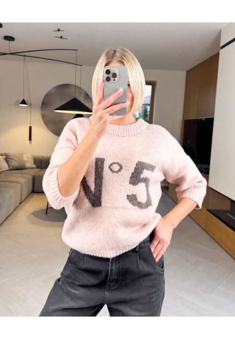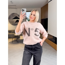 Otul się miękkością i stylem! Nasz pudrowy sweterek to idealne połączenie wygody i modowego pazura. Delikatna, puszysta dzianina przyjemnie otula ciało, a kontrastowy napis N°5 dodaje mu charakteru i francuskiej elegancji.