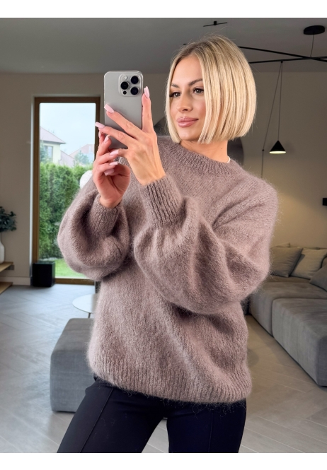 Przytulny, miękki i absolutnie uniwersalny. Ten sweter to must-have na chłodniejsze dni – otula ciepłem, a przy tym wygląda stylowo i kobieco. Luźny krój i lekko bufowane rękawy dodają mu charakteru, a neutralny kolor sprawia, że pasuje dosłownie do wszystkiego.