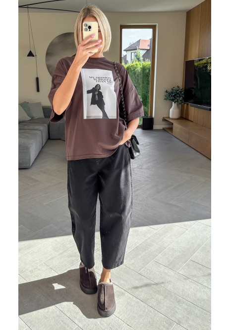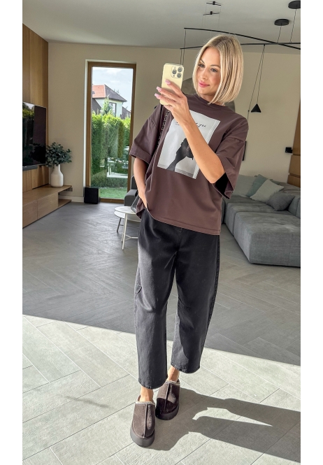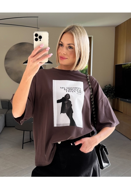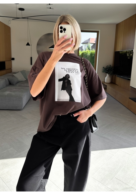Wyraź siebie i swój styl w prosty, ale mocny sposób. Ten brązowy t-shirt z modnym nadrukiem to coś więcej niż zwykła koszulka – to manifest pewności siebie i niezależności.