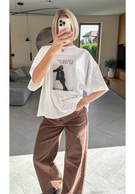 Wyraź siebie i swój styl w prosty, ale mocny sposób. Ten brązowy t-shirt z modnym nadrukiem to coś więcej niż zwykła koszulka – to manifest pewności siebie i niezależności.